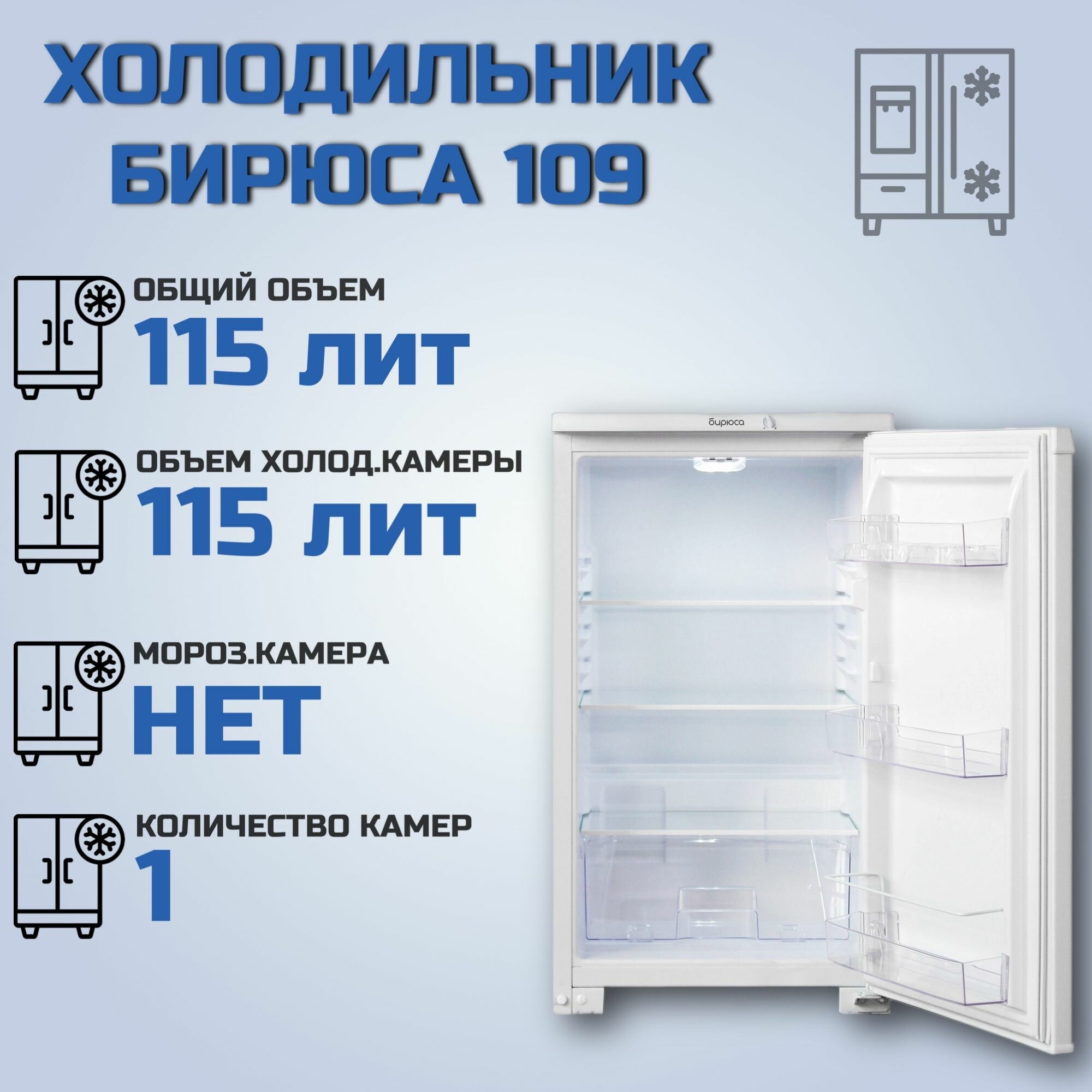 | Прочие особенности и свойства | Холодильник Бирюса 109 белый |