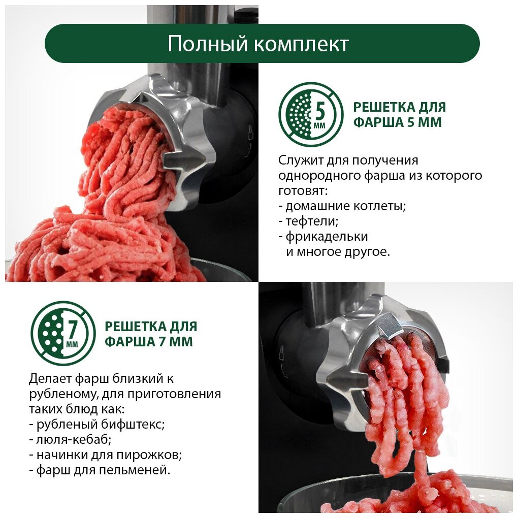 | Диск для фарша | 2 в комплекте, диаметр отверстий 5 мм, 7 мм |