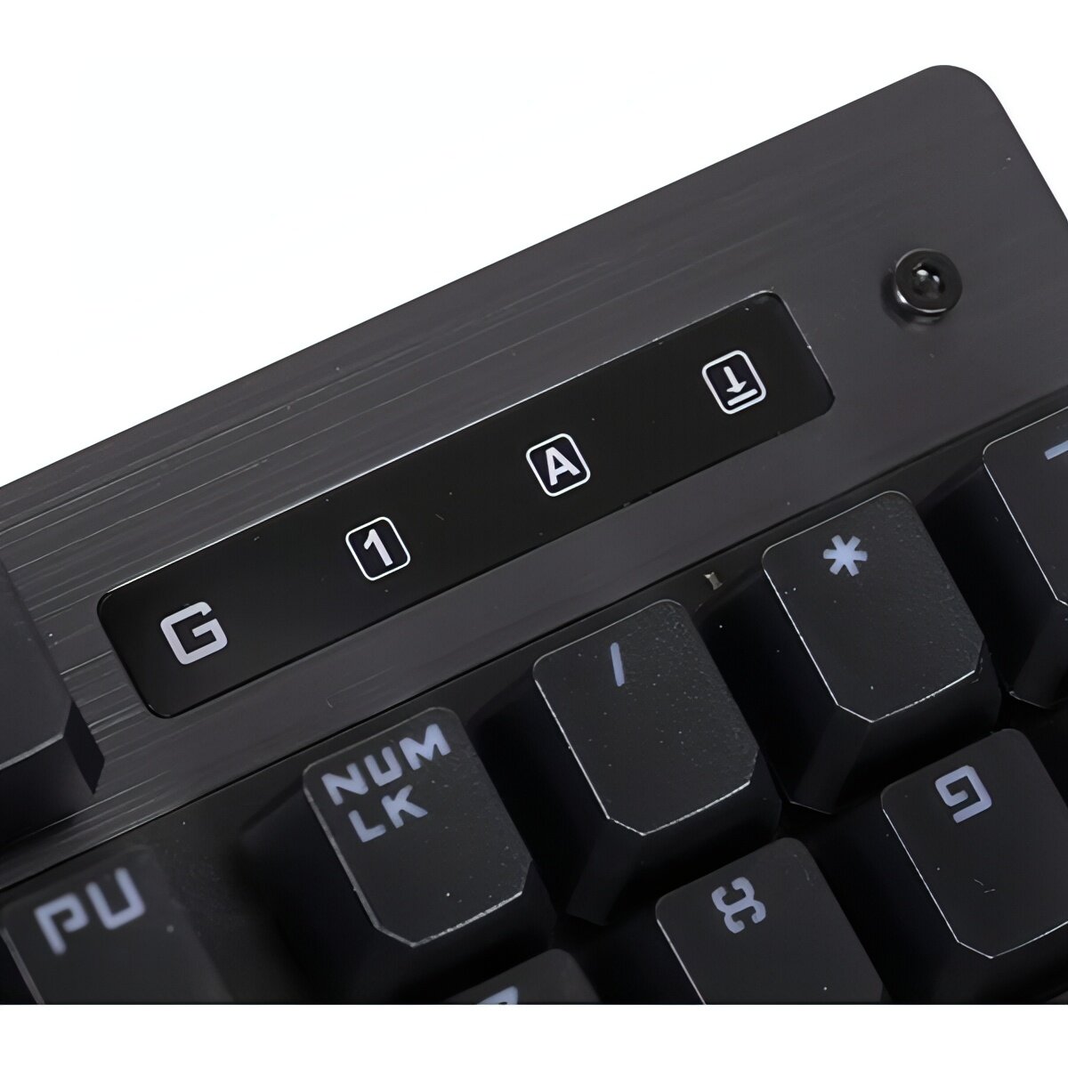 Хорошая клава с надёжными оптическими переключателями (тут скорее закос под механику, а не она сама), и с подсветкой. Клавиши высокие, типа "скелетоны", мне нравится. Есть негромкий щелчок и мягкая отдача при нажиме, срабатывает очень быстро, для игр подойдёт. Подсветка сделана по зонам, рядами, можно менять насыщенность или вообще отключить. Пробел усилен.