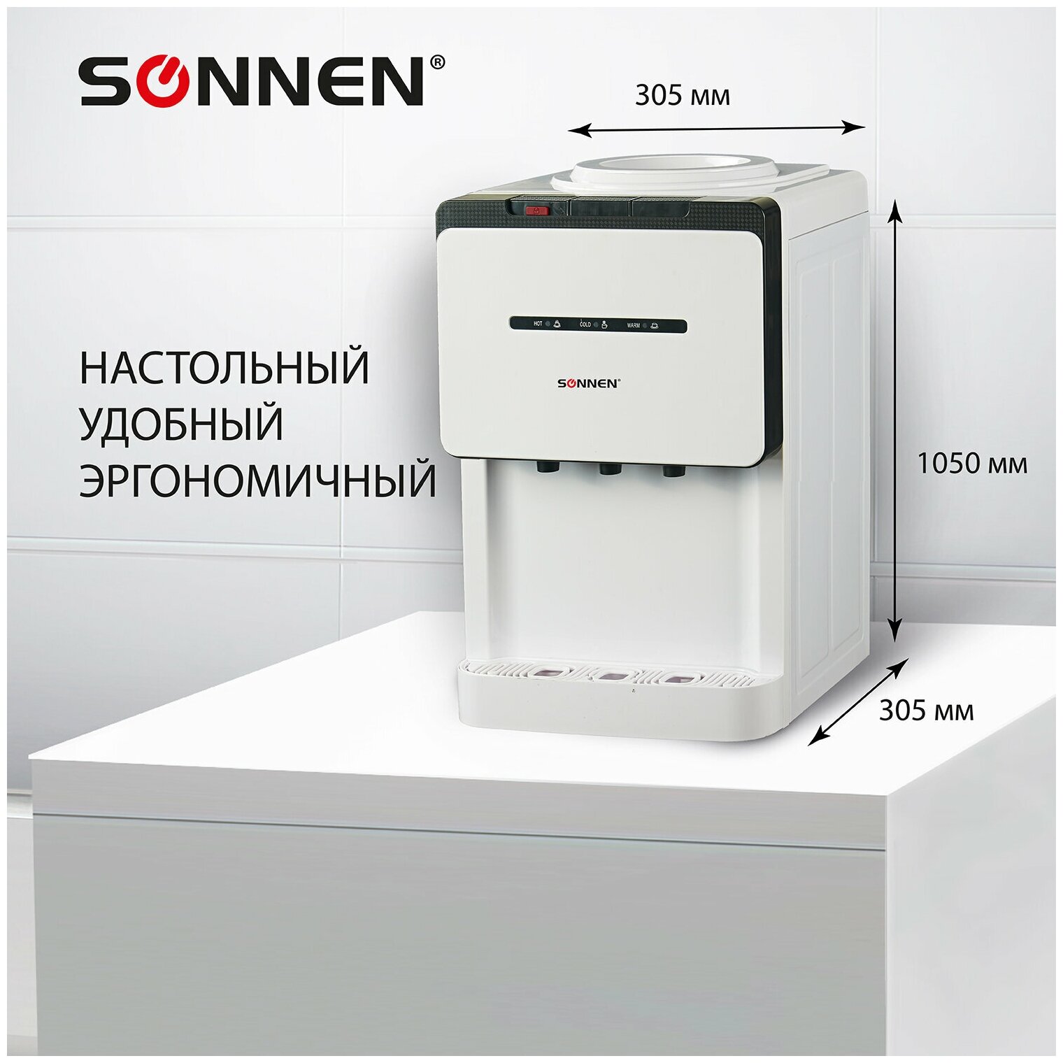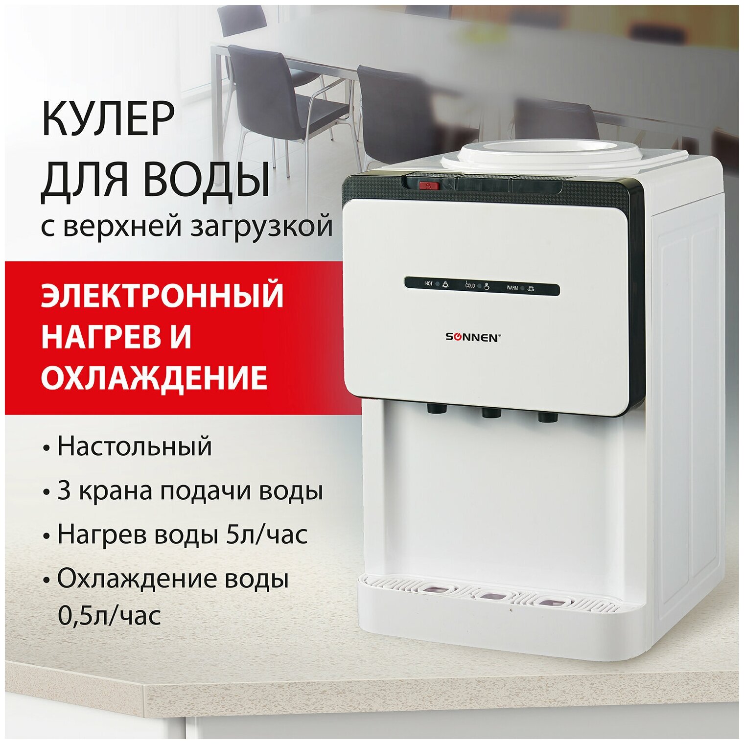 Кулер для воды SONNEN TSE-02 настольный электронное охлаждение/нагрев 3 крана белый/черный 453976