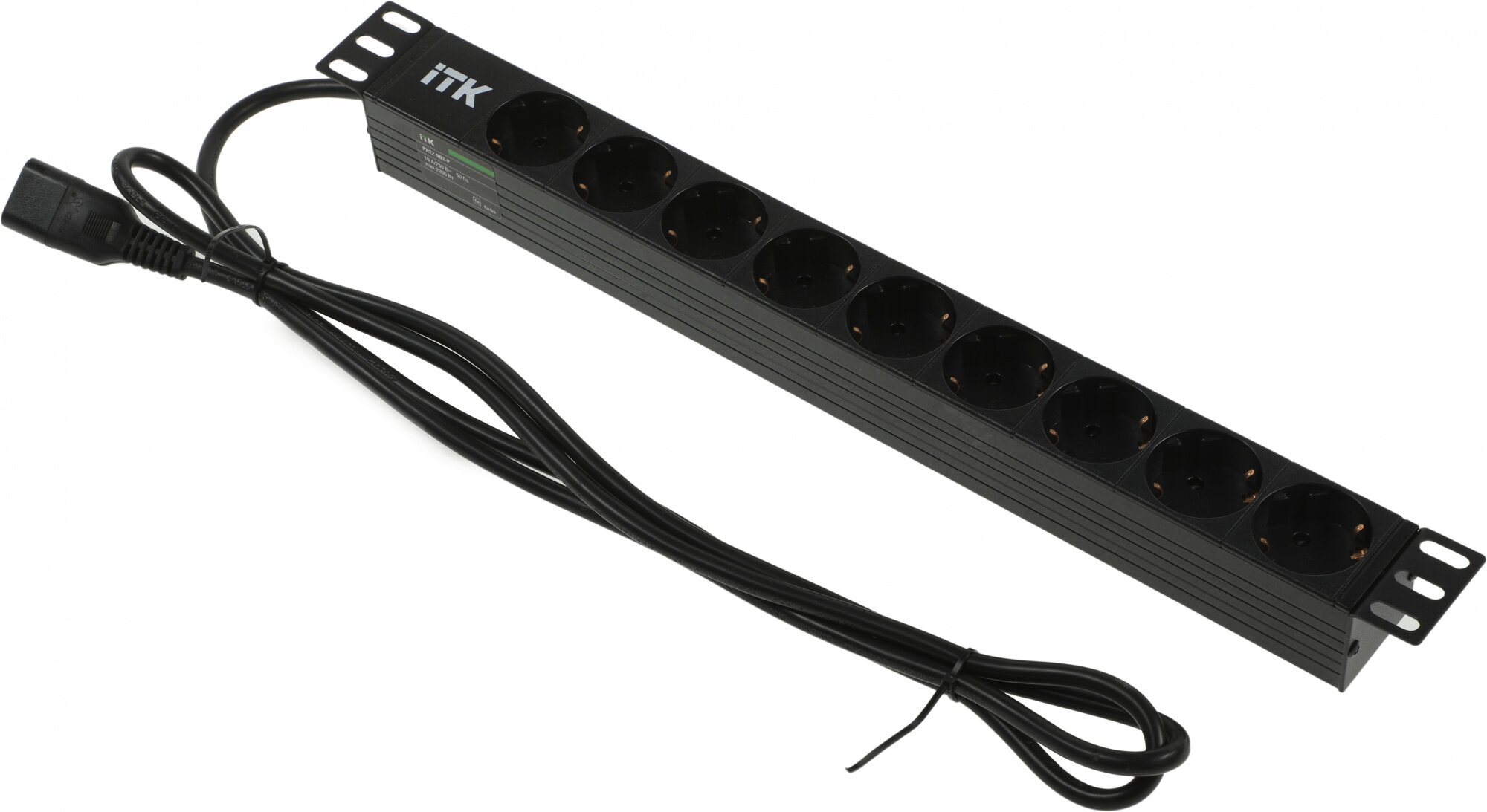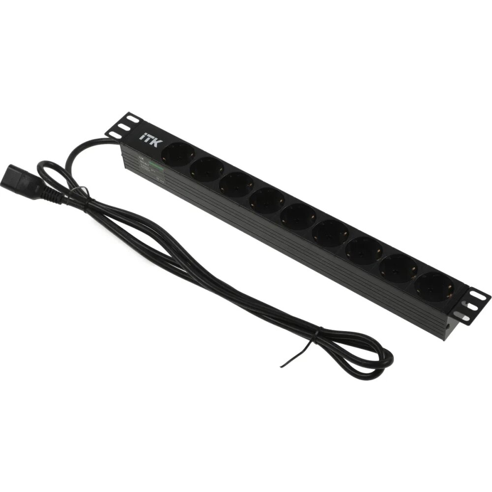 PDU 9 розеток DIN49440 (нем. cтанд.) 1U шнур 2м вилка IEC 320 C14 алюминиевый профиль черный Itk PH22-9D2