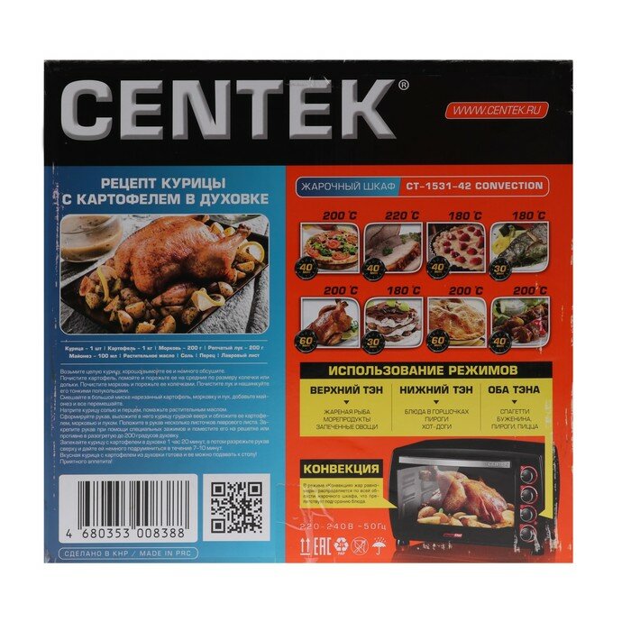 Мини-печь Centek Black - это уникальный товар для всех любителей готовить вкусные и полезные блюда. Благодаря своим превосходным характеристикам и разнообразным функциям, она станет незаменимым помощником на кухне.