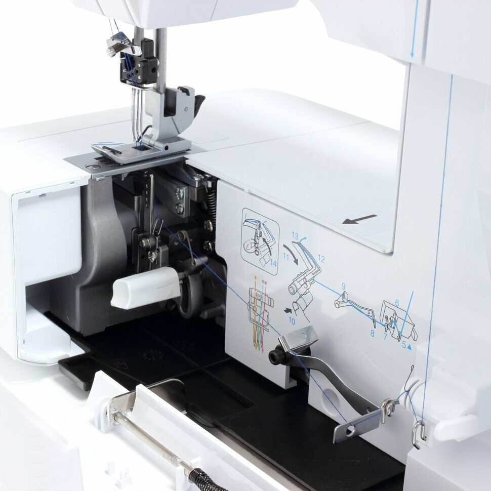 Простота в использованиии, удобство заправки нитей, расширенное рабочее пространство, отключение натяжения нитей в одно действие и "свободный рукав" позволяют с легкостью выполнять разнообразные швейные проекты.