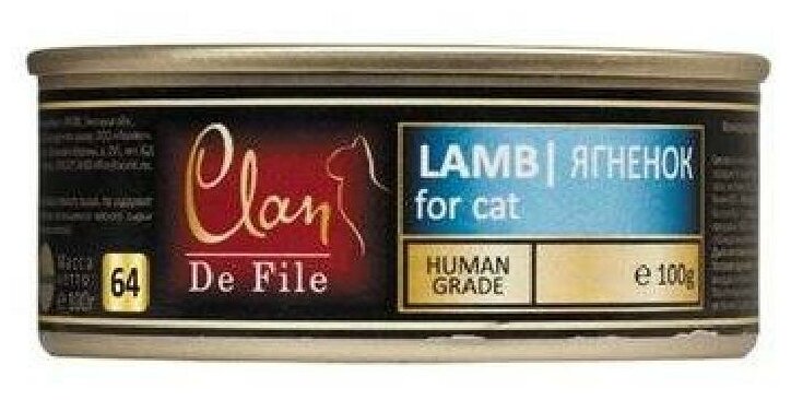 Влажный корм для кошек Clan De File Lamb 01 кг