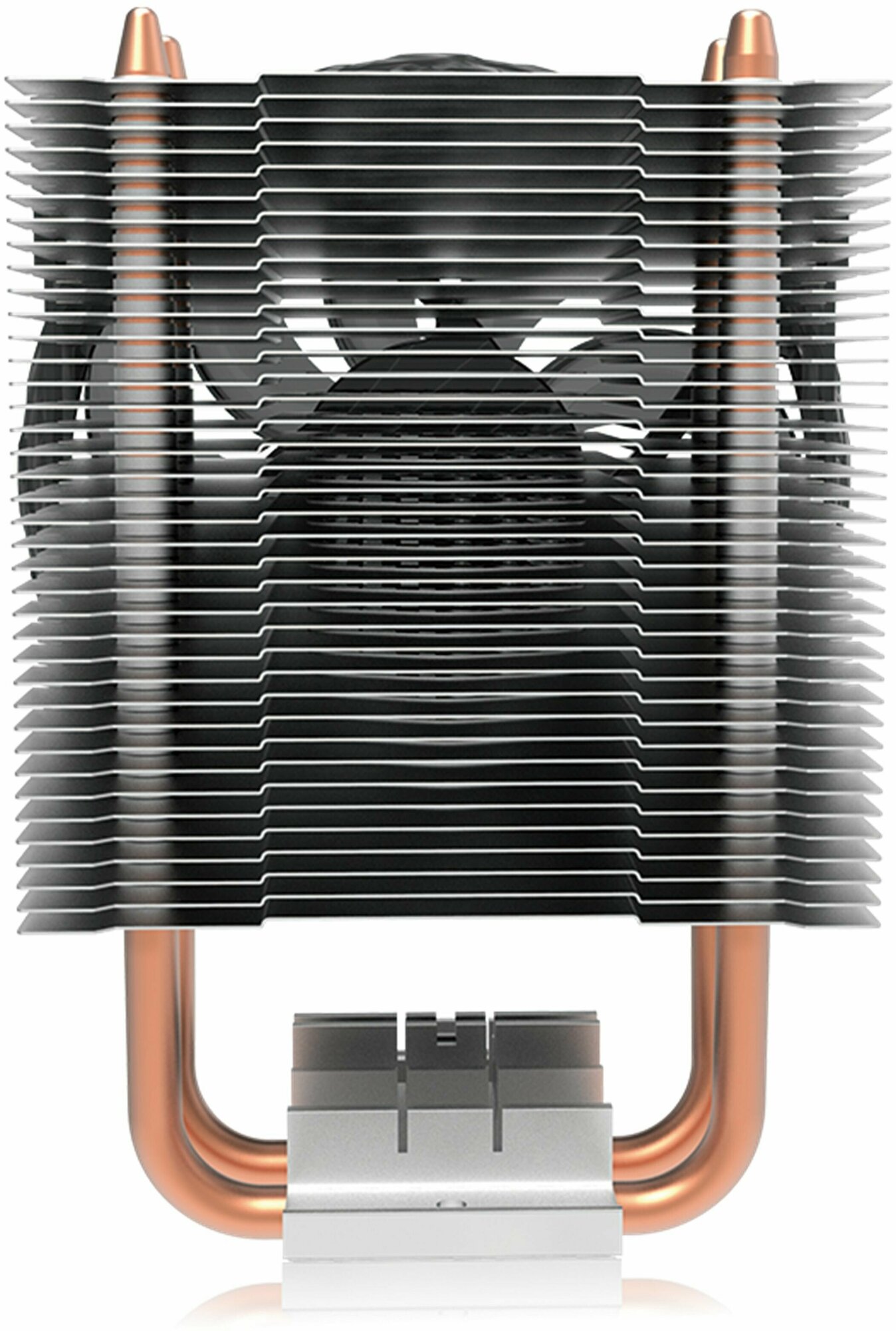 Низкая цена для кулера на 2-х трубках, очень надёжное крепление к материнской плате, бесшумен для процессоров с TDP 65W.
