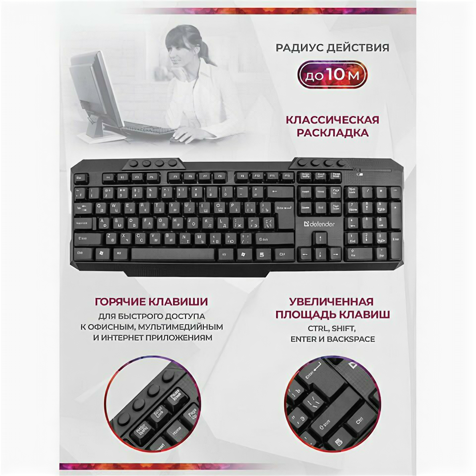 Беспроводной набор Клавиатура + Мышь Jakarta C-805 RU черныйполноразмерный DEFENDER (45805)