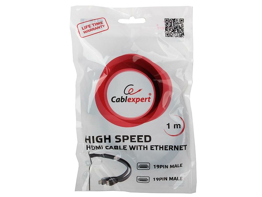 Кабель HDMI Gembird/Cablexpert, 1м, v1.4, 19M/19M, плоский кабель, черный, позол.разъ CC-HDMI4F-1M