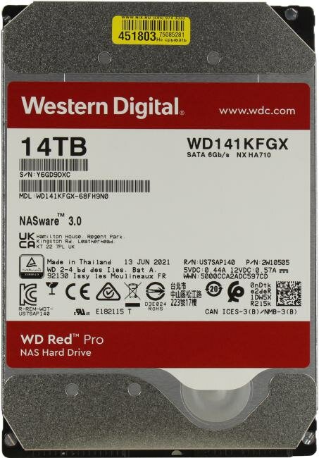 Жесткий диск WD Red Pro 14Тб HDD SATA III 3.5" WD141KFGX