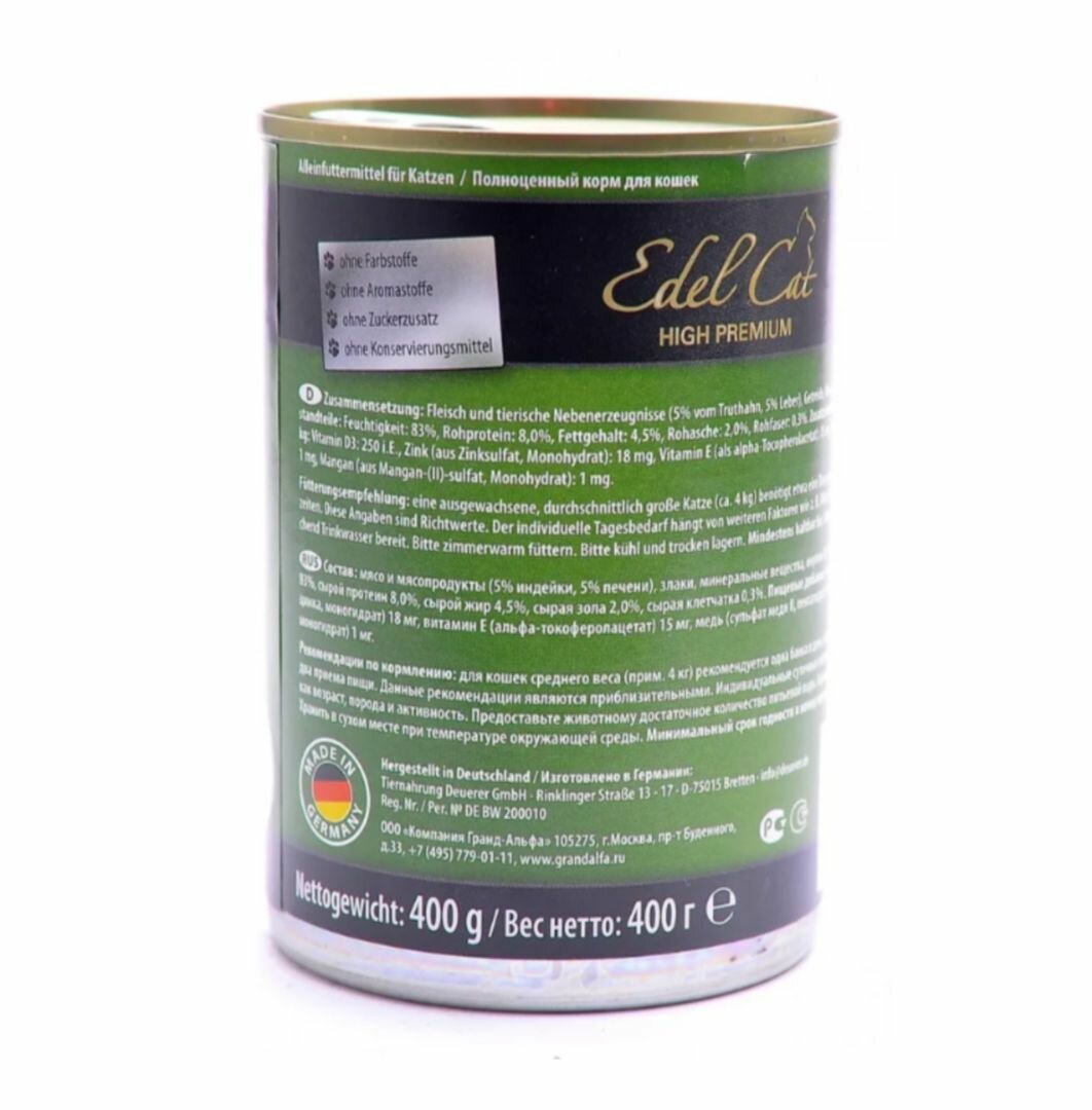 Влажный корм для кошек Edel Cat нежные кусочки в соусе с индейкой и печенью 04 кг