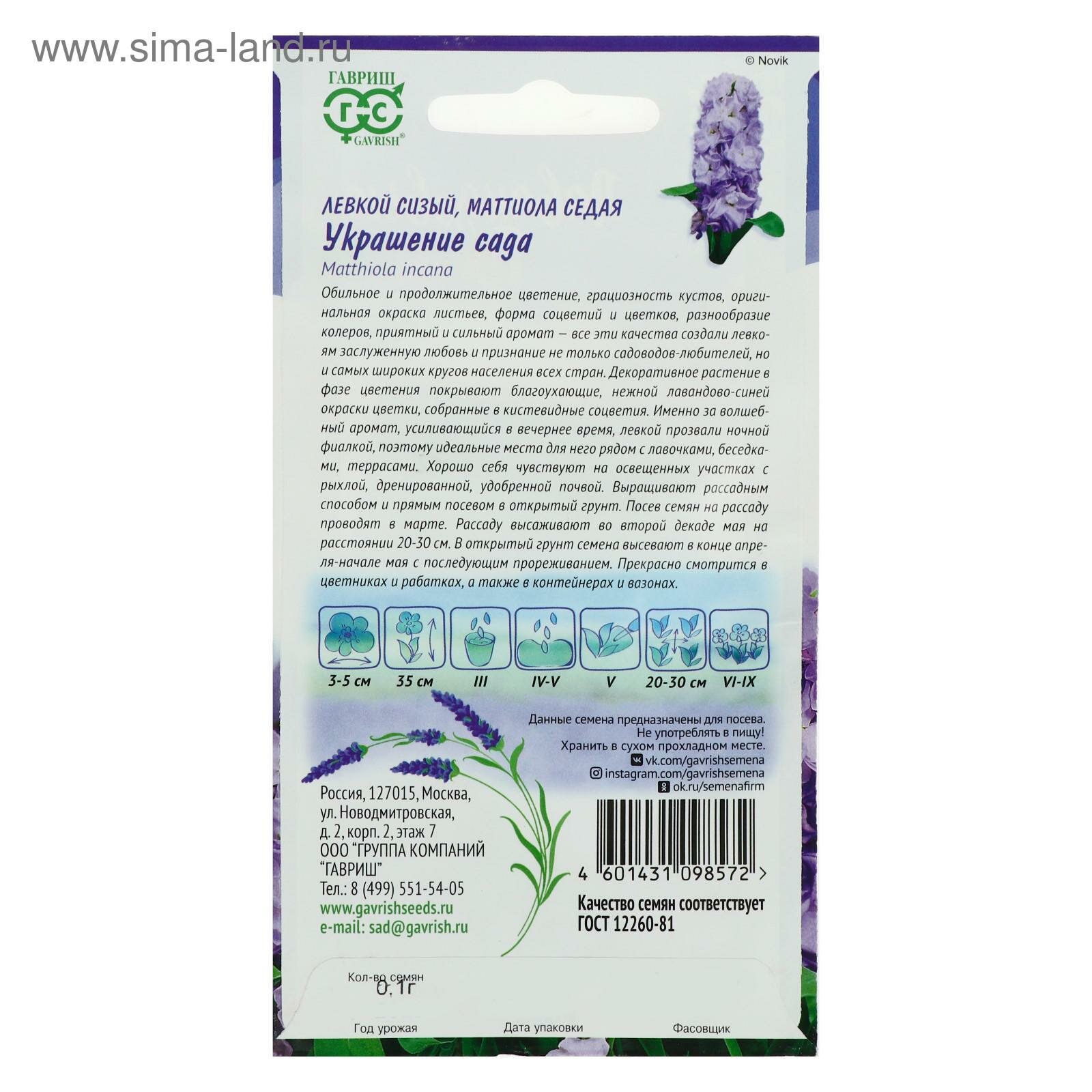 На сегодняшний день товар «Семена левкой Гавриш Лавандовые грезы Украшение сада 01 г» можно купить с кешбеком в 1 магазине: Яндекс.Маркет