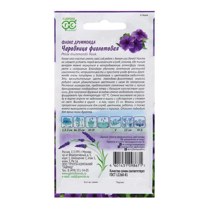Сервис сравнения цен СкидкаГИД предлагает сравнить цены на товар «Семена флокс друммонда Гавриш Лавандовые грезы Чаровница фиолетовая 005 г»
