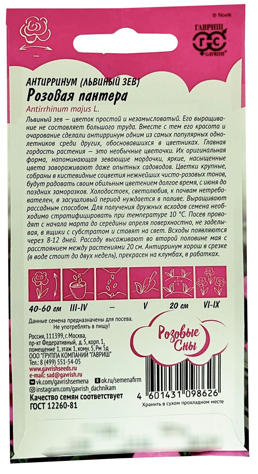 Семена антирринум львиный зев Гавриш Розовые сны Розовая пантера 01 г