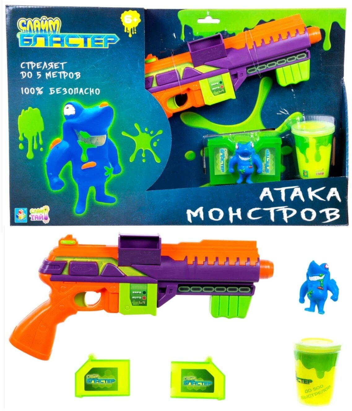 | Комплектация | бластер, мишень, обоймы для слизи, банка слизи |