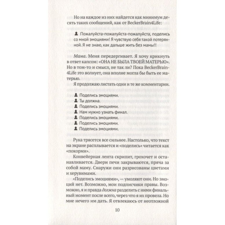 Вот уж действительно поток эмоций. От книги бомбит нереально. Смесь триллера, драмы, янг эдалта и капельки фэнтези. Два повествовательных пласта, которые в итоге связываются в одну историю. Жутко, захватывающе, интригующе, стильно. Хотелось бы, чтобы о книге узнало больше людей.