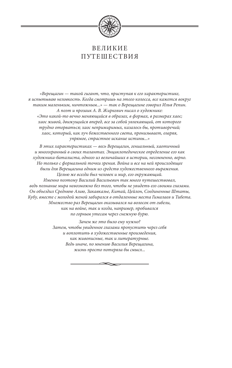 Для меня Верещагин всегда был в первую очередь художником, но из этой книги узнала, что он был еще и талантливым писателем и вообще удивительным человеком. Очень интересно читать про его путешествия и приключения, практически как художественный роман! Качество печати тоже хорошее, бумагу хотелось бы потолще, но понятно, что тогда книгу невозможно было бы взять в руки из-за тяжести, так что все отлично! Особенно порадовали зарисовки автора, очень атмосферно!