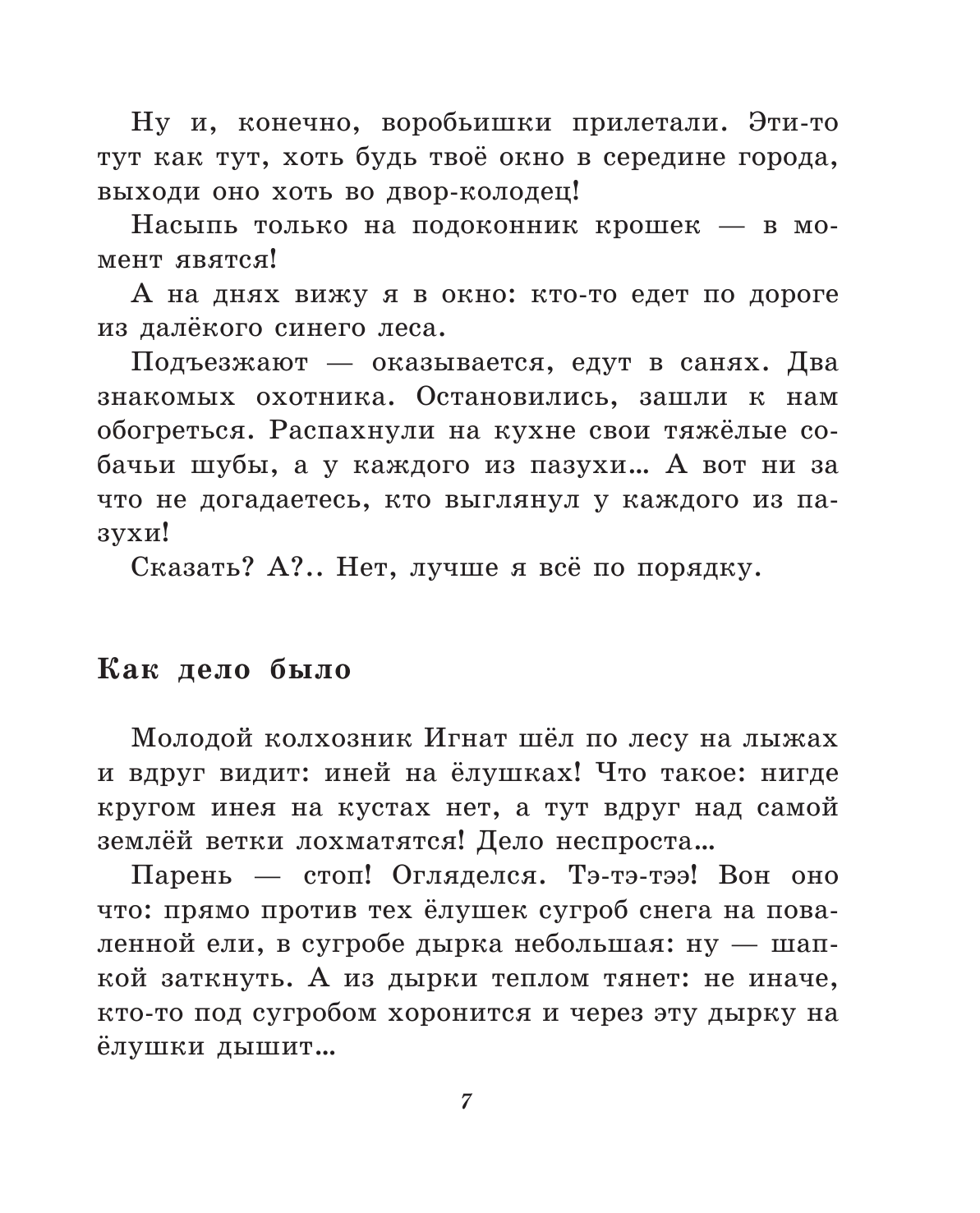 С большой любовью к животному миру, с удивительными подробностями и особенностями природы в разное время года. Так чутко и точно описаны братья наши меньшие, растительный мир. В этой книге большой и удобный шрифт, ребёнок может в дальнейшем читать сам. Небольшие по объёму рассказы, красочные и очень приятные иллюстрации.