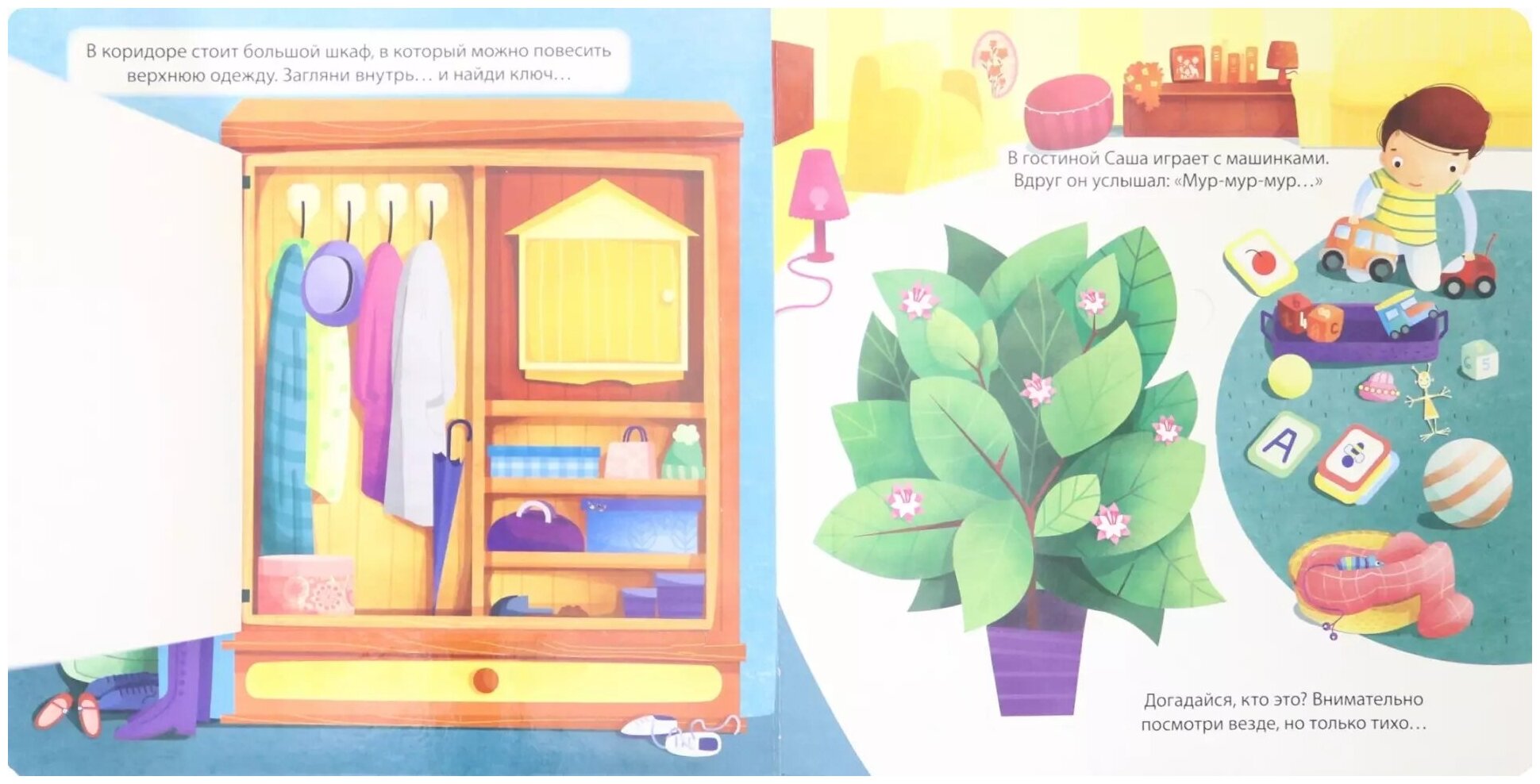 Окошки и сюрпризы любят открывать все, а здесь всё в двойном размере! Например, открываешь почтовый ящик, а потом – письмо в нём. Или гараж, а затем ящик в нём. Даже мы, взрослые, увлеклись этой книгой. Тема книги – дом, окружающая среда. Будет познавательно для малышей 2-3 лет.