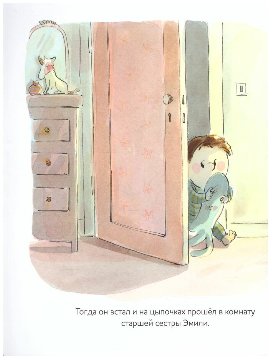Однажды Элиоту приснился кошмар. Cнова заснуть он не смог и пошёл в комнату старшей сестры, где плюхнулся на её кровать. Эмили при этом проснулась и отправилась в спальню к родителям, которые теперь тоже не спят, а папе придётся устраиваться спать на полу в коридоре. Смешная история о том, как в большой семье всем хочется спать.