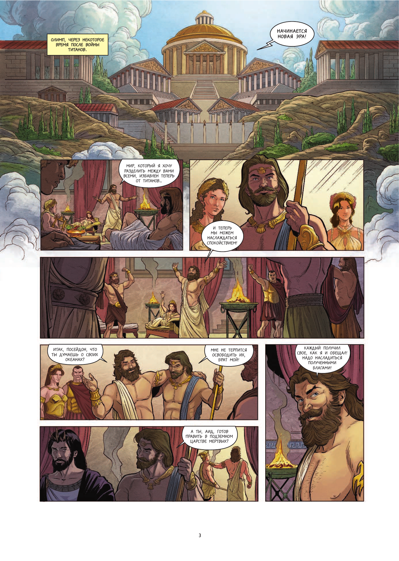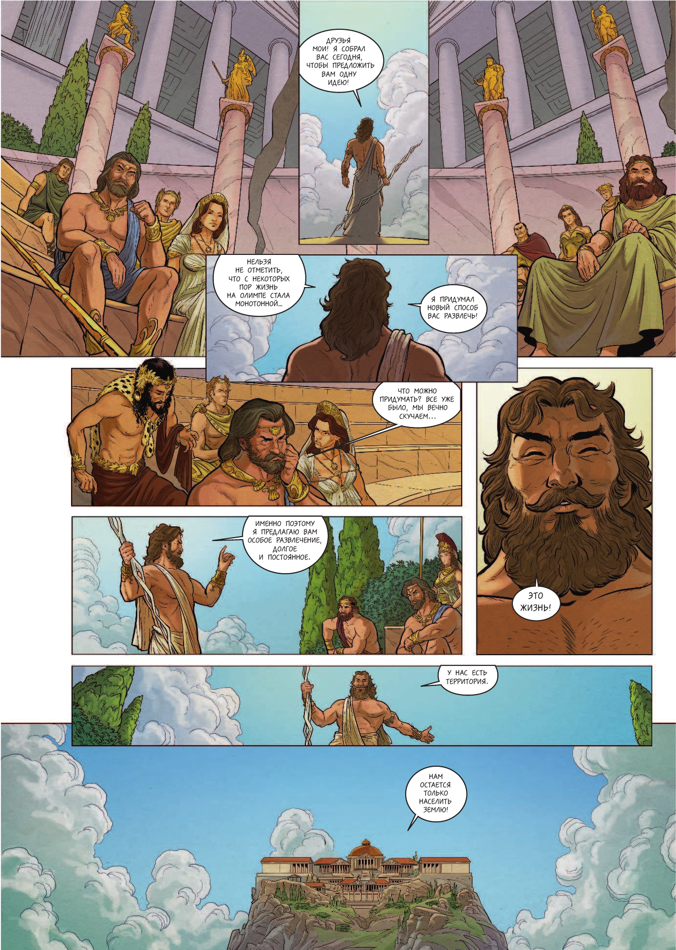 Отличное начало новой серии от нового издательства Бамбора (Эксмо). Сочетается и совмещается зрительный, развлекательный формат комикса, изданный в виде тонкого альбома с классическим сюжетом мифа в пересказе современного французского автора, профессиональной рисовкой и дополнительными материалами и пантеоном богов на развороте.