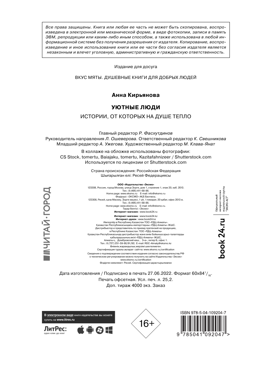 Уютные люди. Истории от которых на душе тепло (Анна Валентиновна Кирьянова); Эксмо, 2023