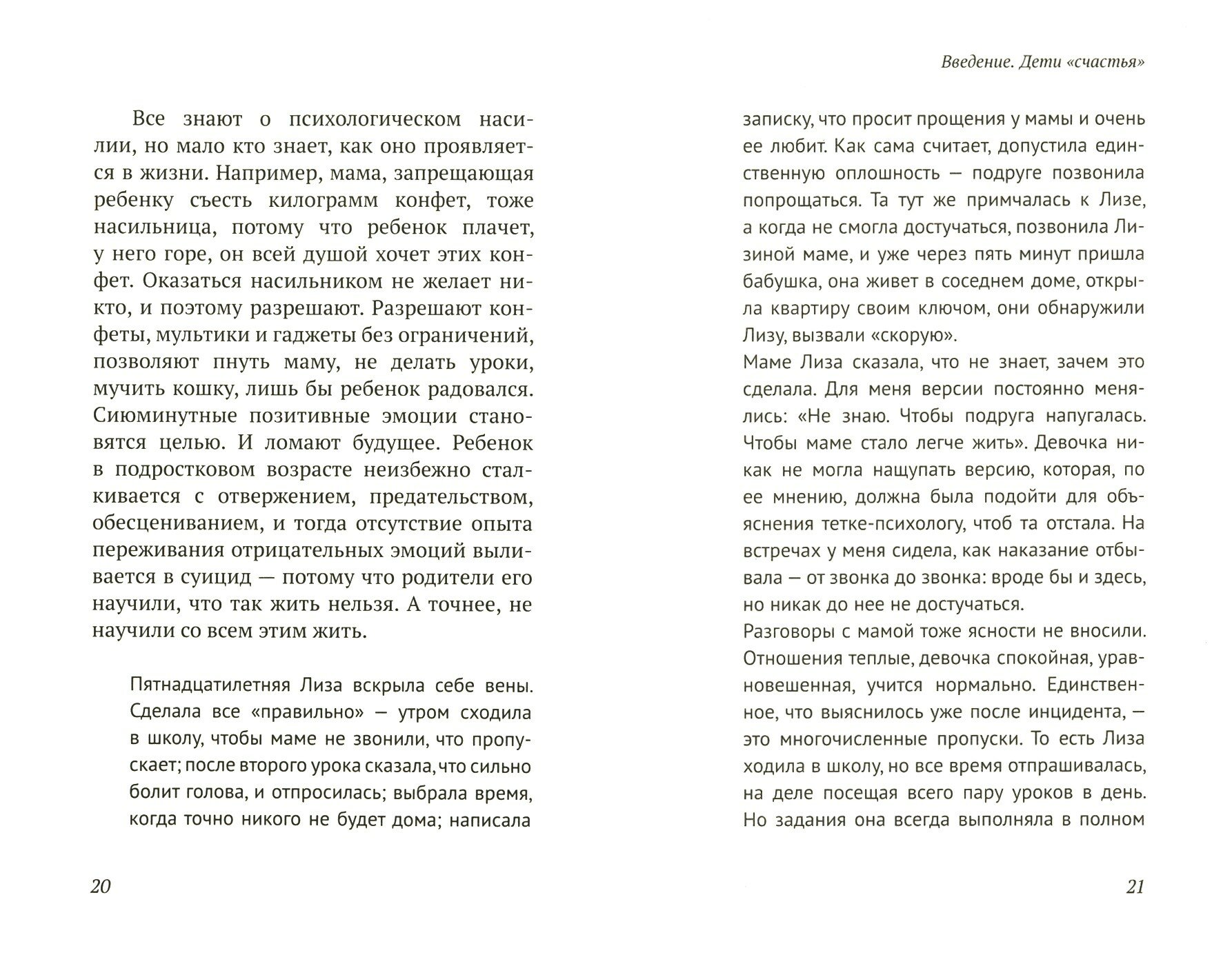 Все, с чем маленький человек не научился справляться в детском возрасте, во взрослом приведет его в ужас. И если он не умеет с этим обращаться, как ему быть? Не давая ребенку возможность накопить опыт преодоления травм и трудностей, мы заведомо растим его неспособным быть самостоятельным, полноценным человеком. Разве этого мы для него желаем? Уверена, что на этот вопрос каждый родитель ответит отрицательно. А раз так, в воспитании стоит усвоить простую, но крайне важную вещь: удовольствие и радость не могут быть единственными эмоциями в чувственном диапазоне человека. Автор книги напрямую говорит: если не дать ребенку опыта грусти и потери, лишить его фазы преодоления этих сложных состояний, откуда ему знать, что такое счастье и радость? Ведь это абсолютно контрастные состояния. А если в жизни нет одного, разве возьмется откуда-то второе? Нет, так это не работает.