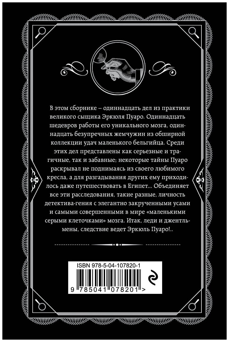 В этом сборнике - одиннадцать дел из практики великого сыщика Эркюля Пуаро. Одиннадцать шедевров работы его уникального мозга, одиннадцать безупречных жемчужин из обширной коллекции удач маленького бельгийца. Среди этих дел представлены как серьезные и трагичные, так и забавные; некоторые тайны Пуаро раскрывал не поднимаясь из своего любимого кресла, а для разгадывания других ему приходилось даже путешествовать в Египет... Объединяет все эти расследования, такие разные, личность детектива-гения с элегантно закрученными усами и самыми совершенными в мире "маленькими серыми клеточками" мозга. Итак, леди и джентльмены, следствие ведет Эркюль Пуаро!..