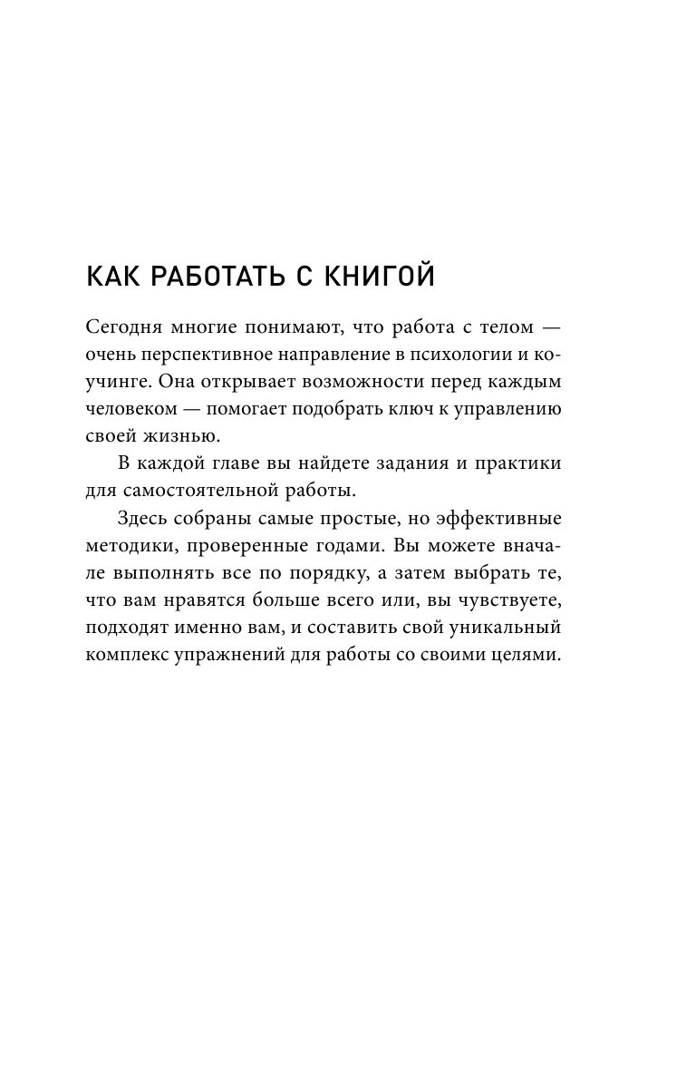 Эта книга соединяет в себе психологические практики и приемы телесной терапии. Изучив их, вы сможете избавиться от негативных блоков и зажимов, а также понять, кто вы и как управлять энергией, данной вам от рождения.