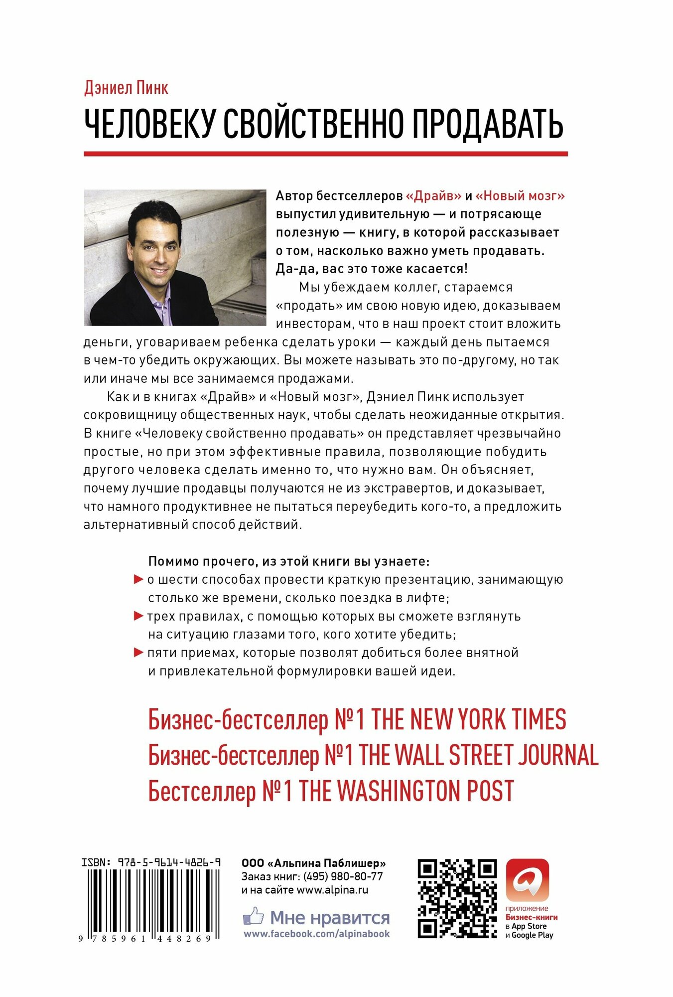 Человеку свойственно продавать: Удивительная правда о том, как побуж-дать других к действию / Дэниел Пинк ; Пер. с англ. — М.: Альпина ПРО, 2022.