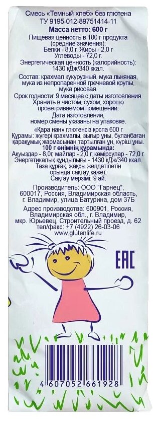 Сервис сравнения цен СкидкаГИД предлагает сравнить цены на товар «Смесь для выпечки Гарнец Темный хлеб без глютена 600г»
