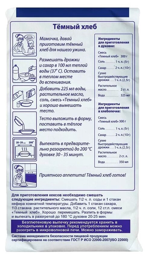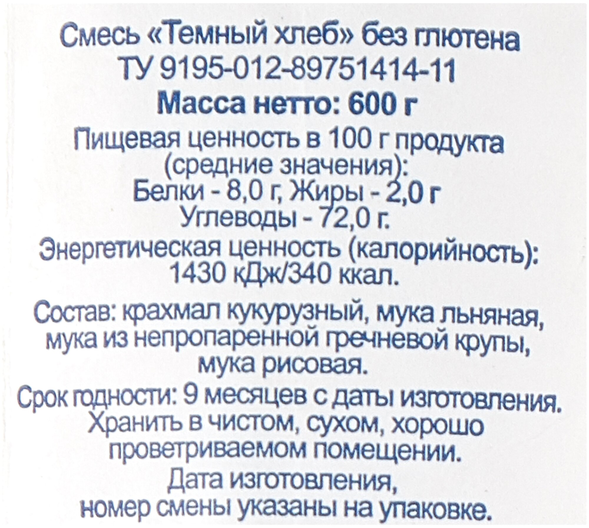 Готовая хлебная смесь «Темный хлеб» поможет вам с легкостью испечь домашний хлеб для всей семьи, даже если вы новичок в кулинарии. Теперь приготовить хлеб в домашних условиях – легко и быстро. Мучные смеси без глютена создаются под четким контролем. Грамотно подбирается исходное сырье, проводится контроль на наличие глютена. Смесь проверяется как на предприятии производителя, так и в сторонних лабораториях.