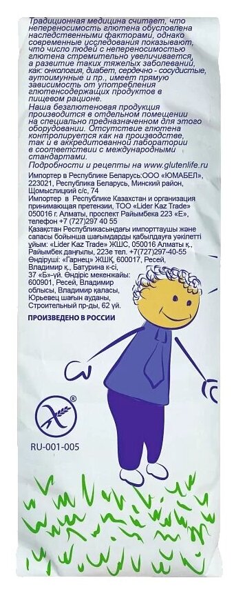 | Состав | крахмал кукурузный, мука льняная, мука из непропаренной гречневой крупы, мука рисовая. |