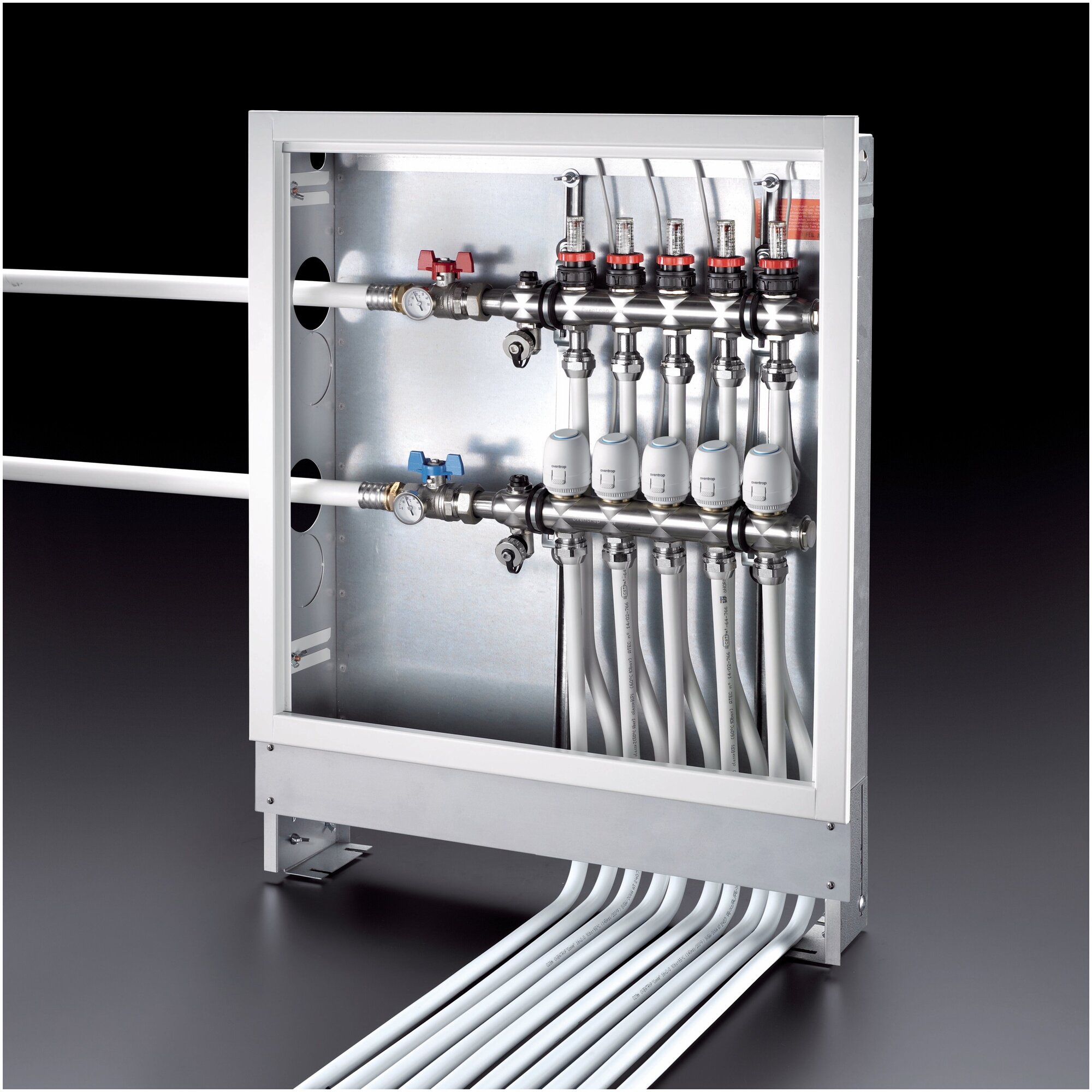 Коллекторные шкафы Oventrop применяются для монтажа коллекторных групп внутри шкафа. Широкий спектр габаритных характеристик шкафов позволяет монтировать коллекторную группу любых размеров. В зависимости от типа и размера коллекторной группы можно подобрать шкаф.