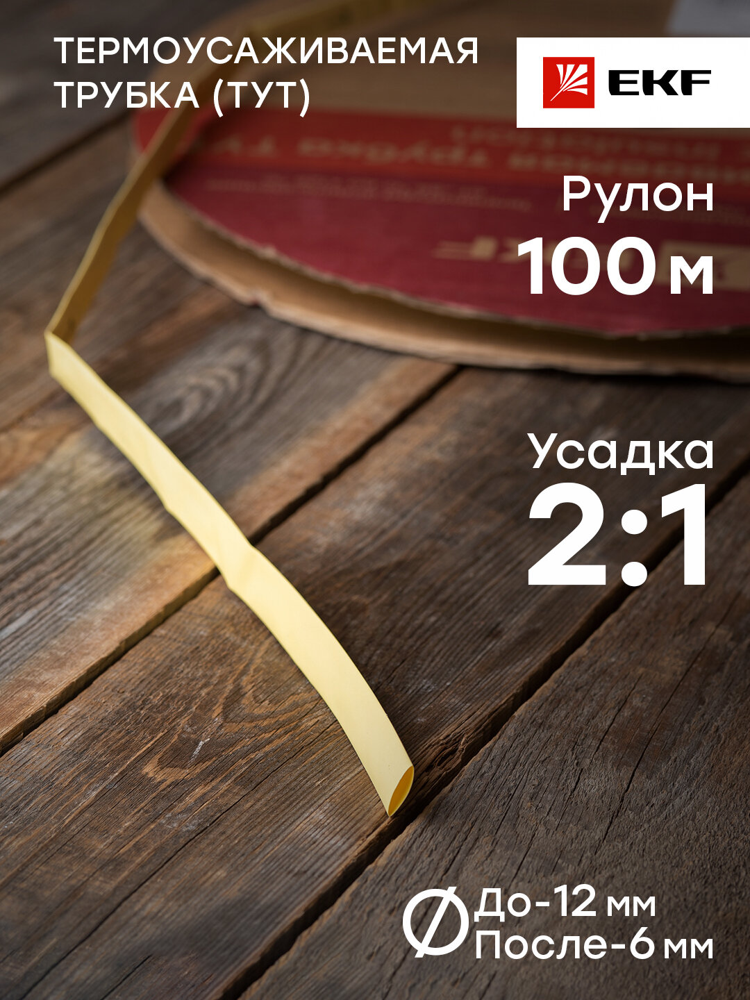 tut-12-y Термоусаживаемая трубка ТУТ 12/6 желтая рулон PROxima Упаковка (100 шт.) EKF