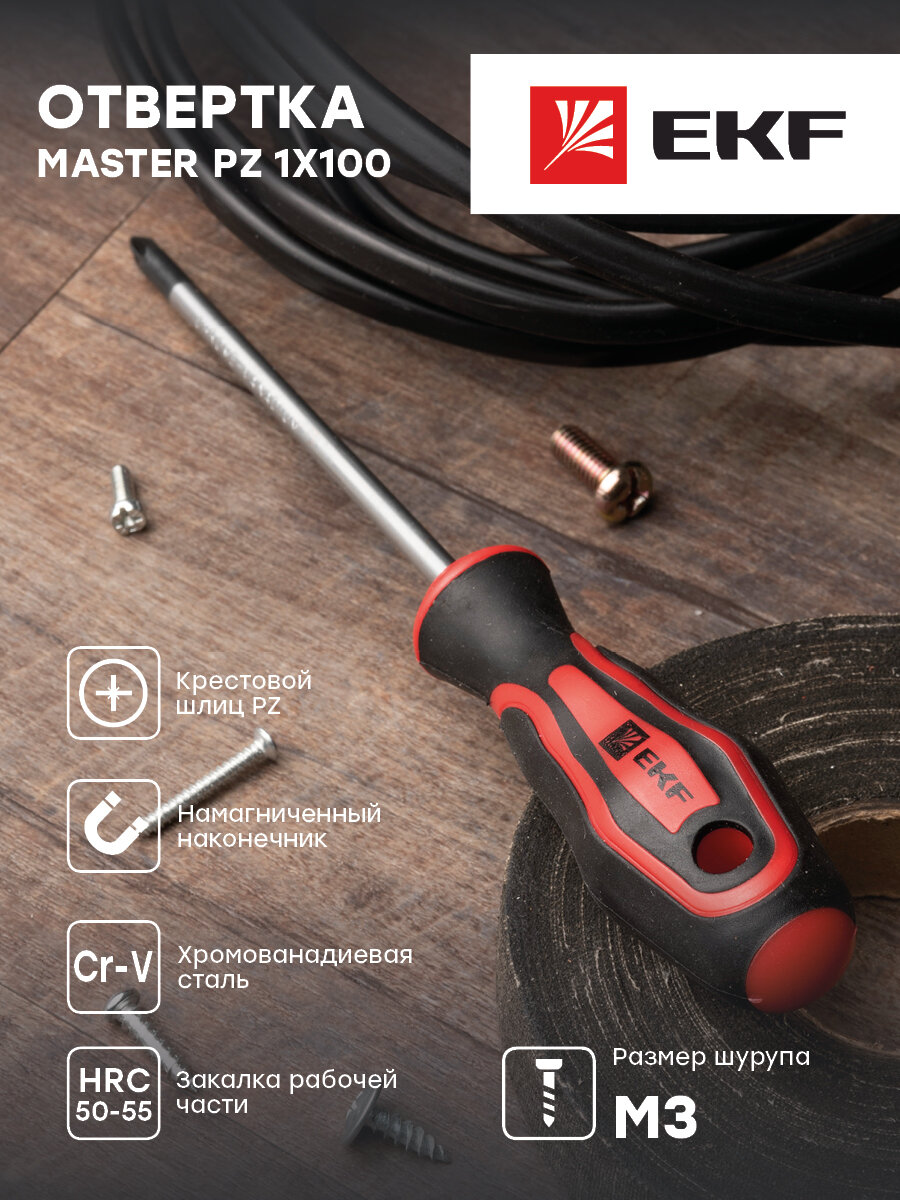 pz-1-100-mas Отвертка Master PZ1x100 мм Basic Упаковка (12 шт.) EKF