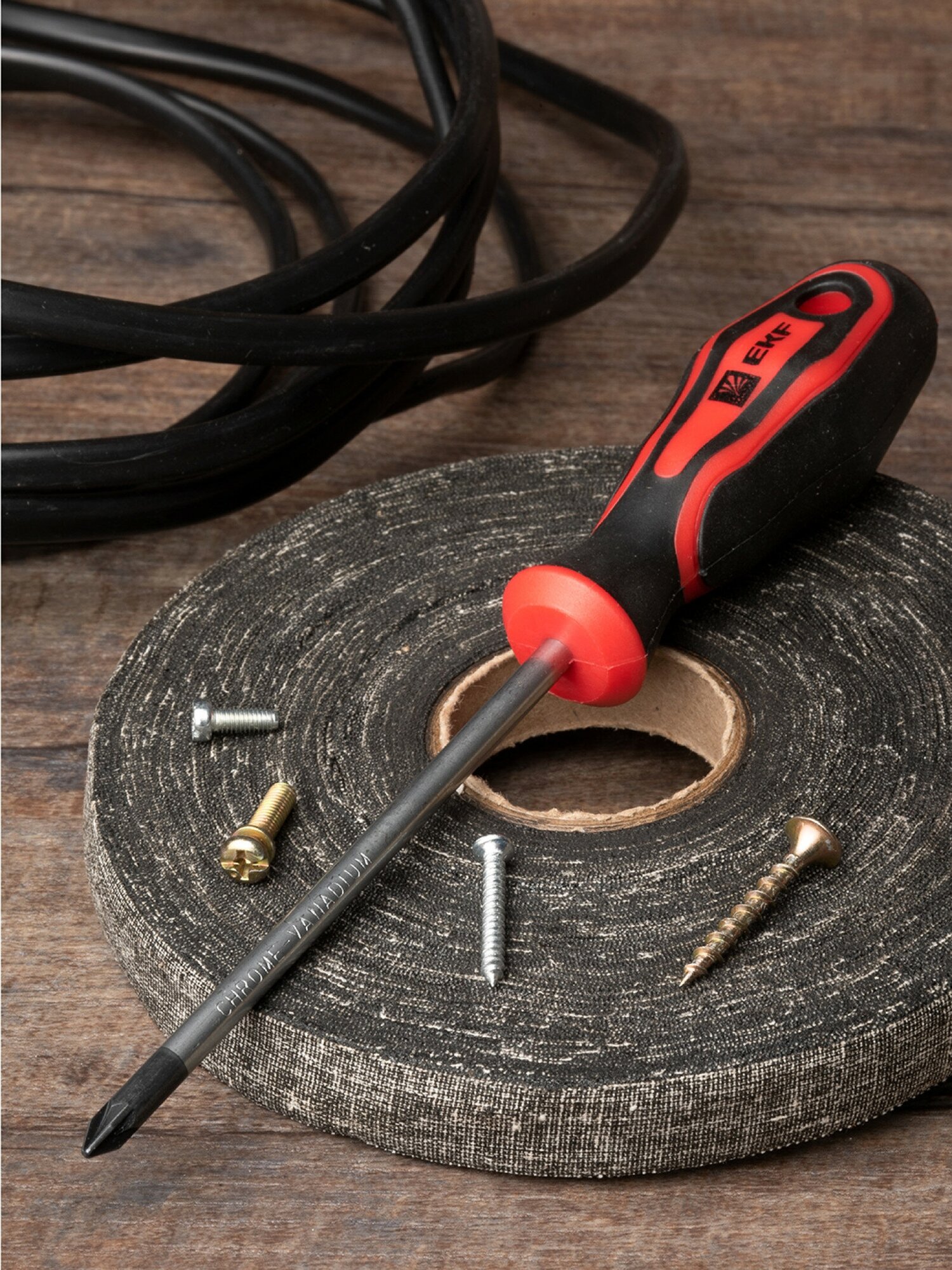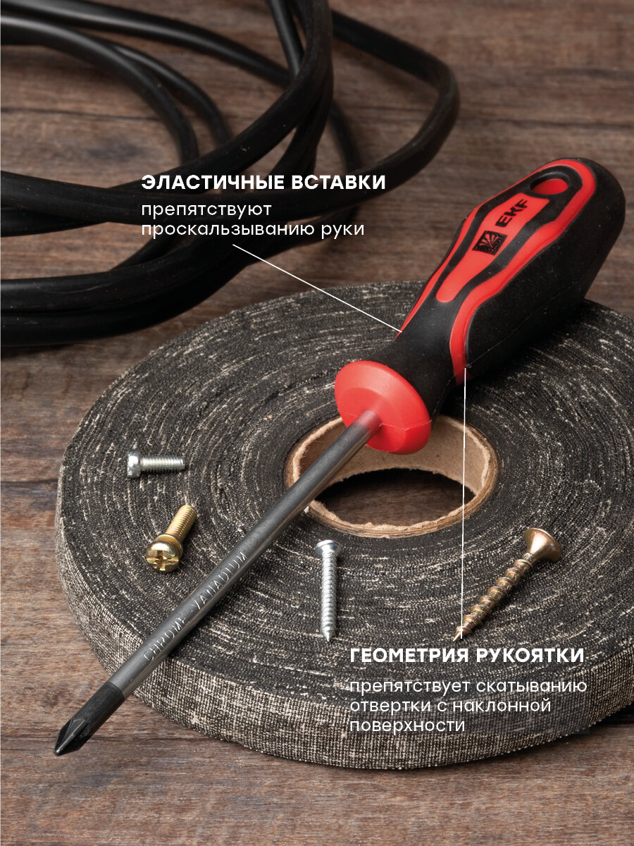 ОПИСАНИЕ. Отвертки - это ручной инструмент с широким спектром применения у профессионалов и любителей, предназначенный для завинчивания и отвинчивания крепежных изделий с резьбой. ПРЕИМУЩЕСТВА. • Рабочая часть отверток выполнена из Cr-V – хромованадиевой стали, что делает ее устойчивой к механическим повреждениям, температурным воздействиям и образованию коррозии. • Намагниченный наконечник с дополнительной закалкой HRC 50-55. • Высококачественный материал двухкомпонентной рукоятки обеспечивает плотный контакт и минимизирует эффект скольжения. • Диаметр и специальная форма рукояток обеспечивают увеличенный крутящий момент при минимальных физических затратах. ПРИМЕНЕНИЕ. Электромонтажные работы: • Ремонт бытовой техники и компьютеров. • Сборка и разборка мебели. • Обслуживание транспорта и т. д.