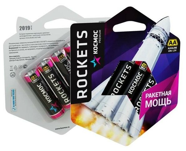 Элемент питания алкалиновый LR6 KOSMOS premium ROCKETS (блист. 4шт) KOSLR6ROCKETS4BL КОСМОС