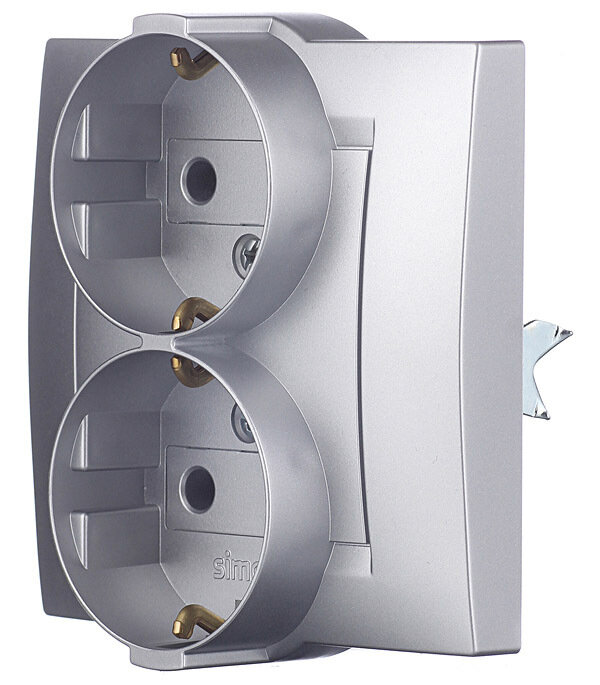 Розетка двойная Simon Simon 15 1590459-033 (16 А, з/к, в сборе, скрытая установка, алюминий)