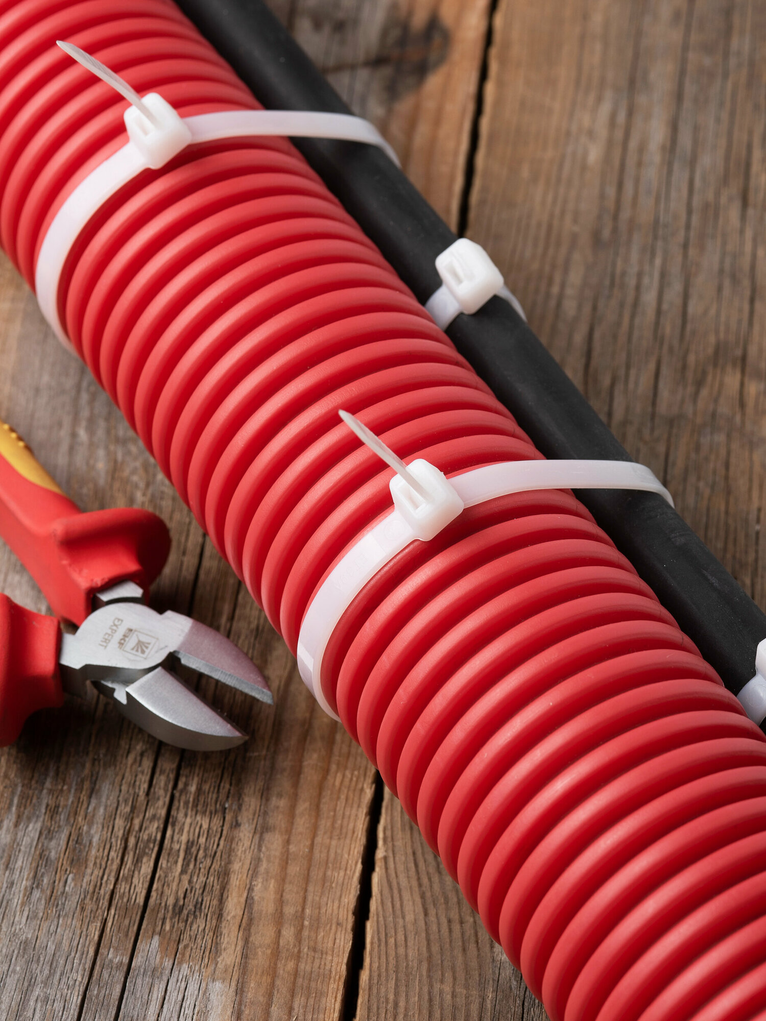 Предназначен для увязки кабелей и проводов в пучок и монтажа кабельных линий и проводников. Ремешок самофиксирующийся, блокирующий механизм. Изготовлен из Nylon 6.6, устойчивого к старению, коррозии, воздействию солей, ультрафиолета, кислот, щелочей, спирта, бензина и масел. При производстве кабельных стяжек черного цвета добавляется угольный порошок, который является одним из наиболее эффективных стабилизаторов. Он улучшает физические свойства продукции в стойкости к погодным условиям и УФ-излучению (прямые солнечные лучи). ПРЕИМУЩЕСТВА. Увеличенная ширина рабочей части. Материал: нейлон 6.6, самозатухающий, без галогенов. Надежный самофиксирующийся замок. Обеспечивают прочную и надежную связку. ПРИМЕНЕНИЕ. Предназначены для бандажирования и увязки проводов и кабелей в закрытых помещениях и на открытом воздухе.