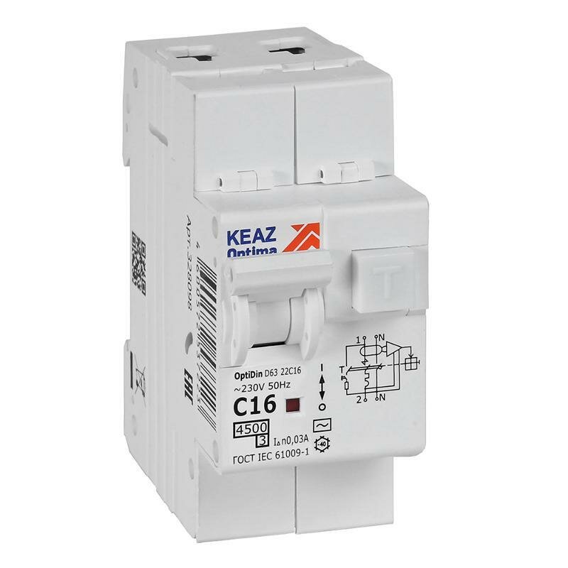 Автоматический выключатель дифференциального тока двухполюсный 6А КЭАЗ OptiDin 103505 (тип AC, 6 кА, 30 мА)