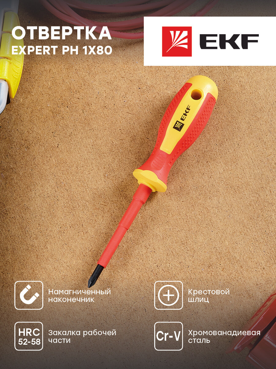 ph-1-80-exp-in Отвертка Expert PH1x80 мм 1000В PROxima Упаковка (12 шт.) EKF