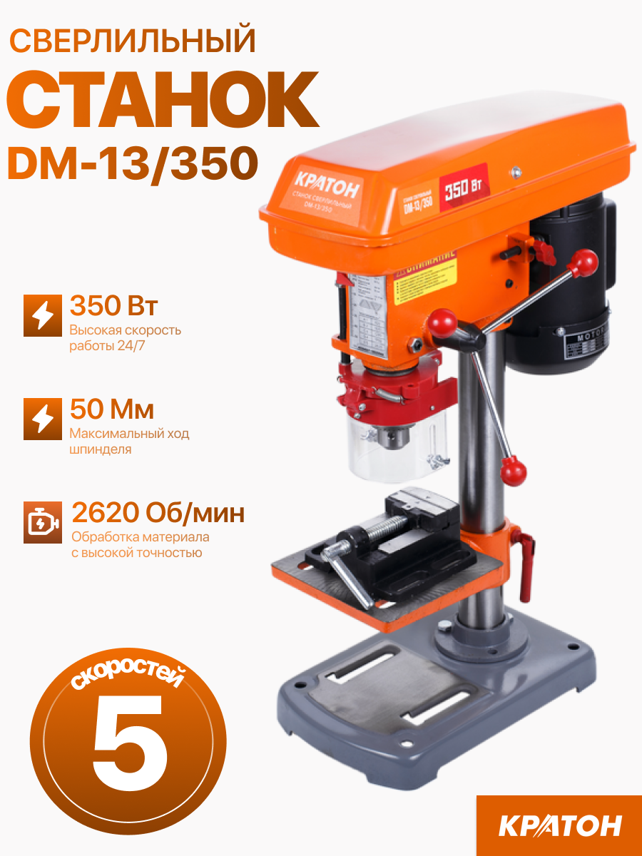 Станок сверлильный КРАТОН DM-13/350 350Вт 620-2620об/мин патрон 13мм 5ск.