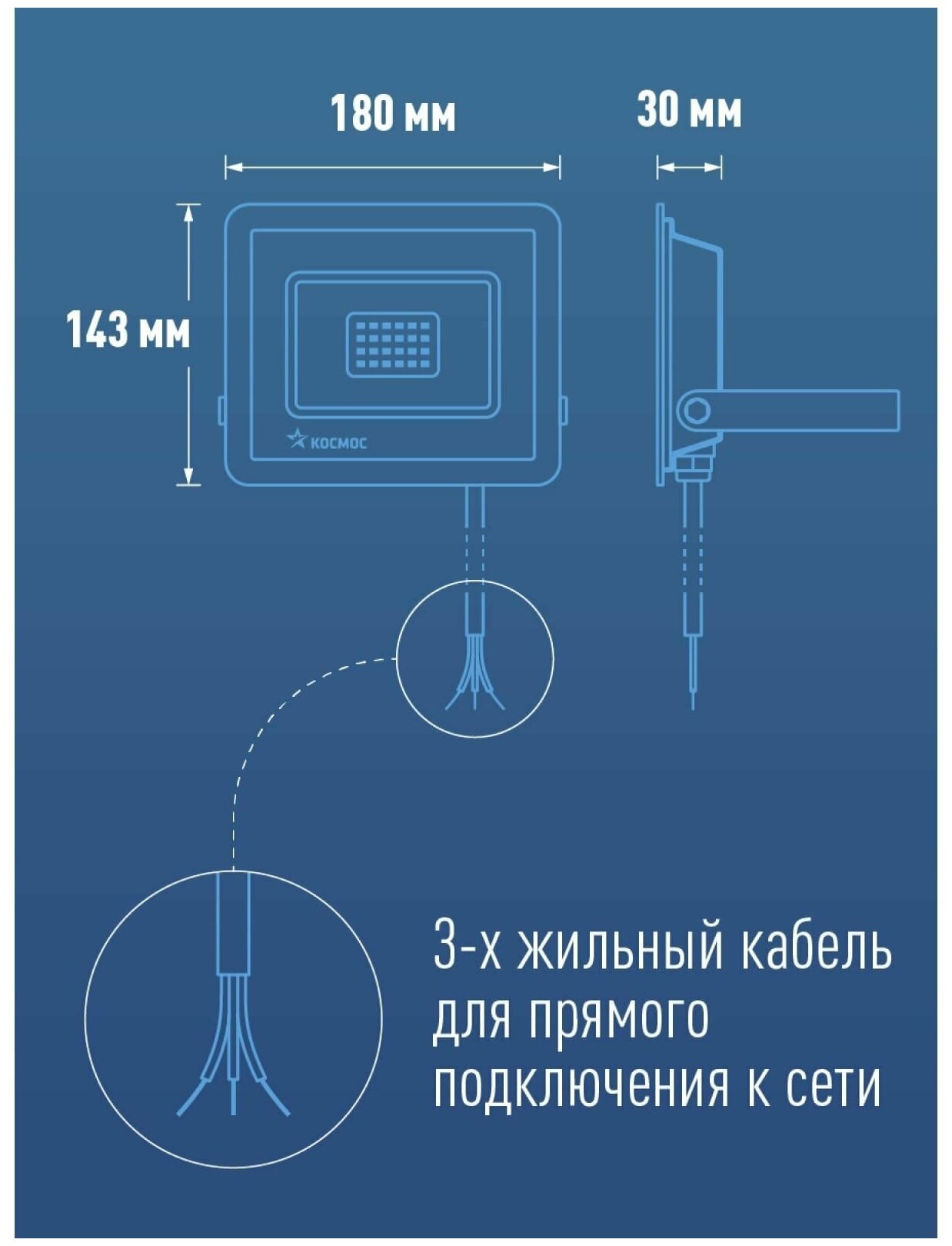 Прожектор КОСМОС 30Вт 2400лм 6500к ip65 k_pr5_led_30