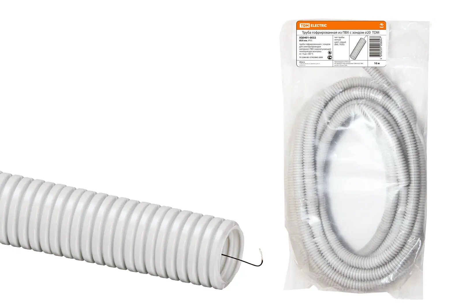 Труба TDM SQ0401-0032 гофр.пвх D20 с зондом 10м легкая