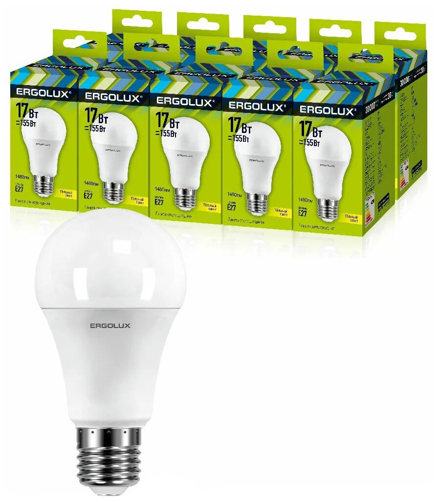 Лампа светодиодная груша Ergolux LED-A60-17W-E27-3K E27 17W 3000K