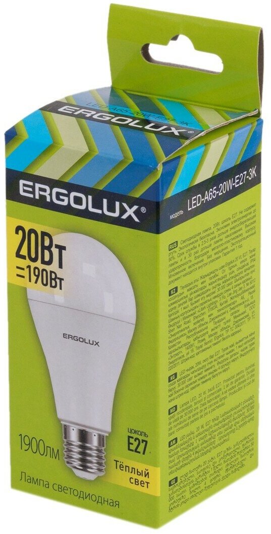 Лампа светодиодная груша Ergolux LED-A65-20W-E27-3K E27 20W 3000K