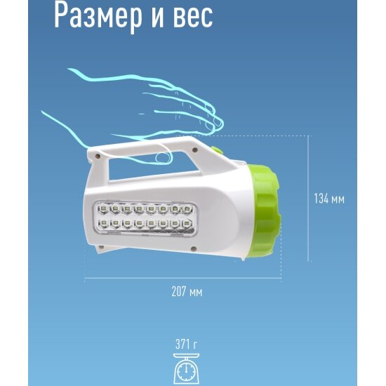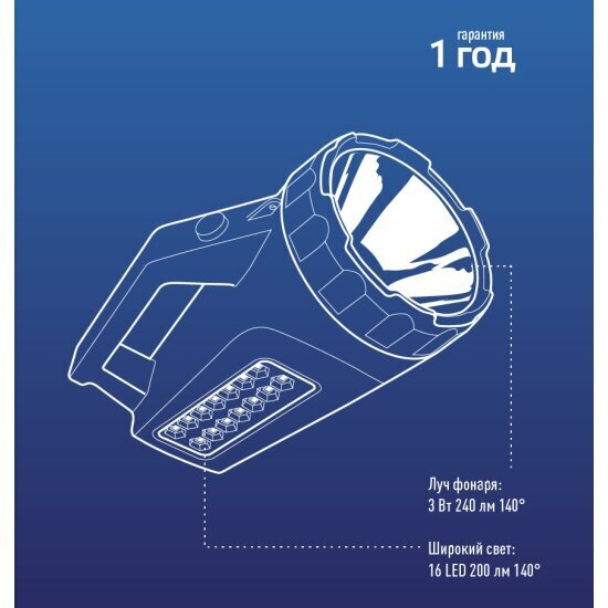 | Прочие особенности и свойства | Уникальная сенсорная кнопка «Easy-Click» осуществляет переключение между тремя режимами работы. Фонарь-прожектор с боковым светильником, |
