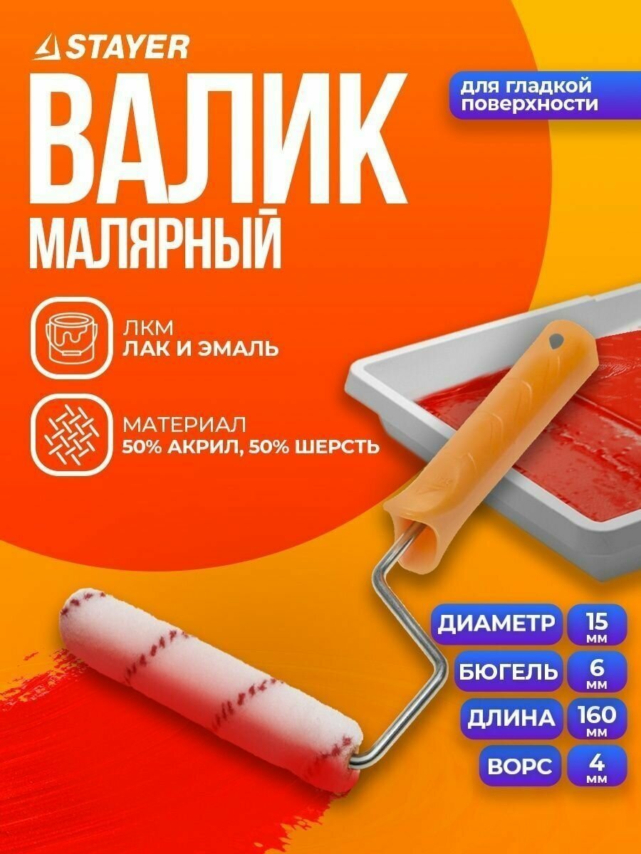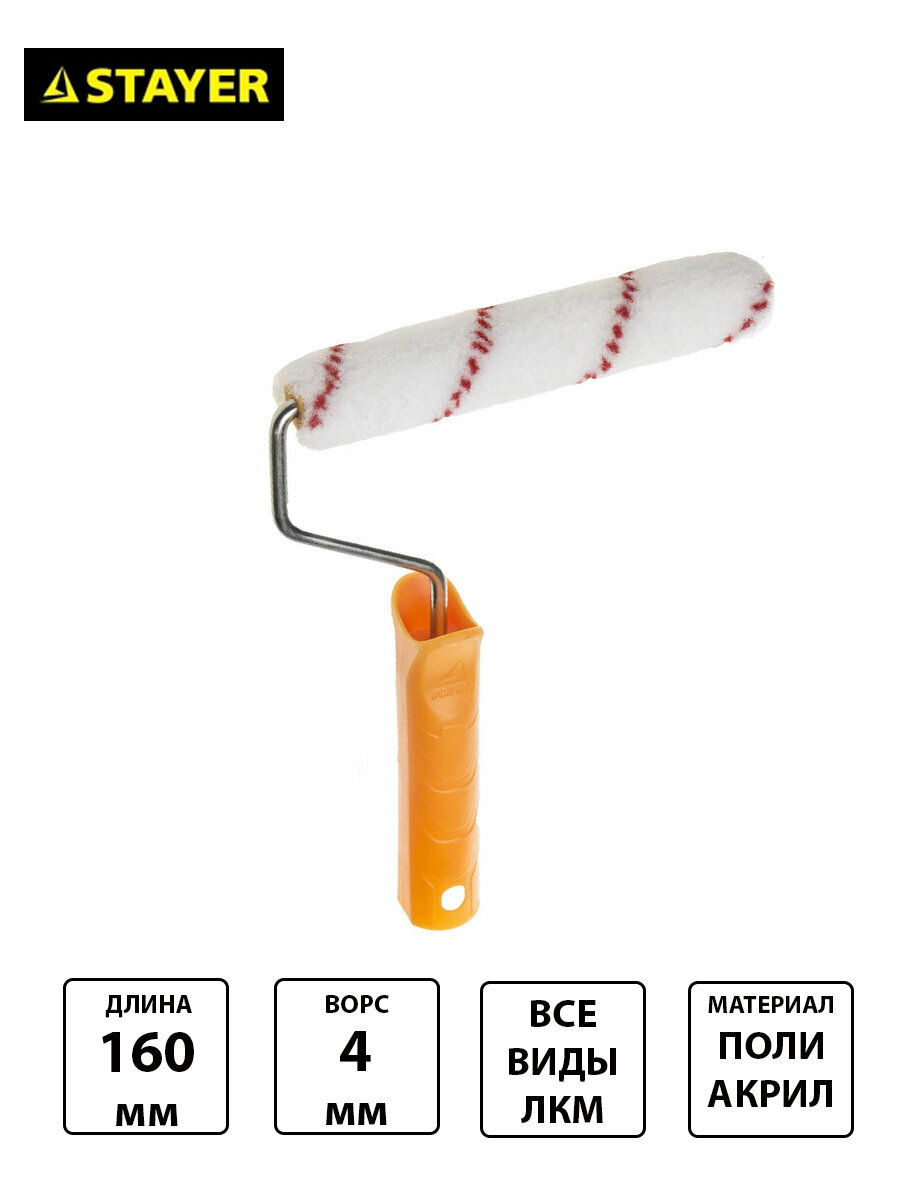 Мини-валик STAYER Master "VELOUR" 03-0501-16_z01 малярный в сборе ворс 4мм бюгель 6мм 15х160мм