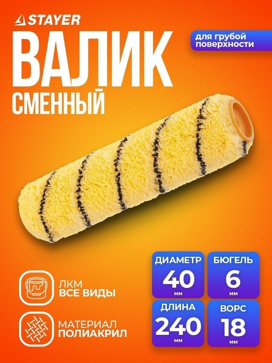 Ролик STAYER Master DUALON ПОЛИАКРИЛ 02184-24 малярный ворс 12мм бюгель 6мм 40x240мм