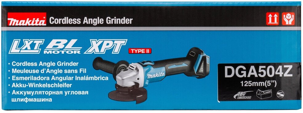 | Прочие особенности и свойства | Угловая шлифмашина Makita DGA504Z применяется для различных видов работ по шлифованию и резанию металлов и других материалов. Наличие дополнительной рукояти гарантирует удобный хват при эксплуатации. Она может устанавливаться в двух положениях. Инструмент оснащен кожухом, защищающим пользователя от искр и пыли. |