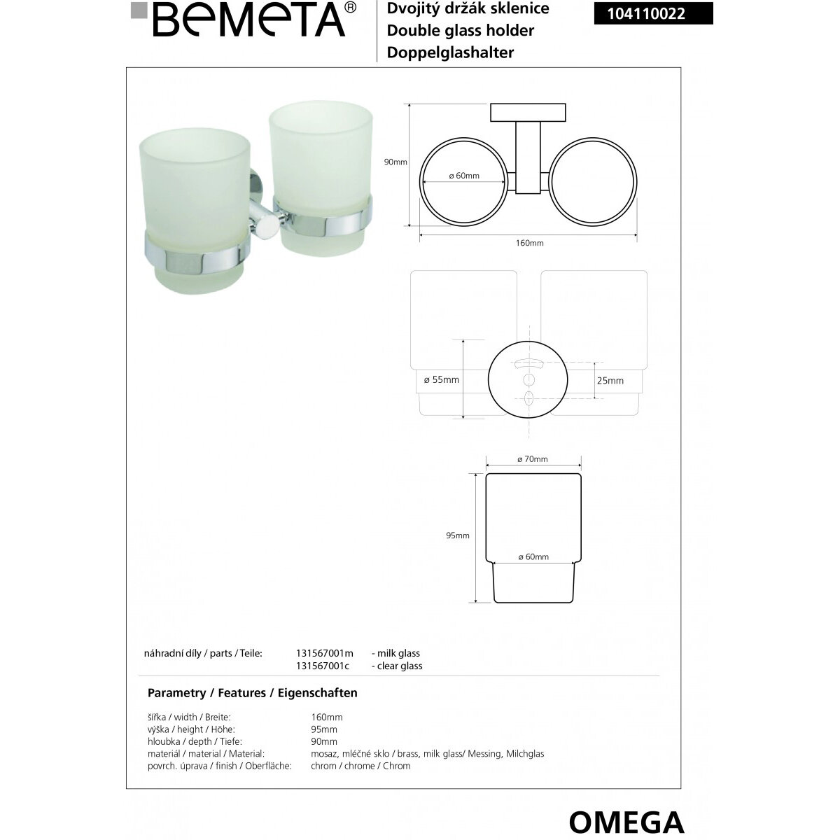 | Название цвета | Стакан Bemeta Omega 104110022 (двойной) хром |
